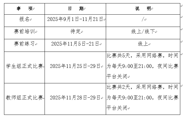 竞赛周期为5天,平台开放时间为上午9:00至晚上21:00,学生可在比赛时间段内登录平台操作。