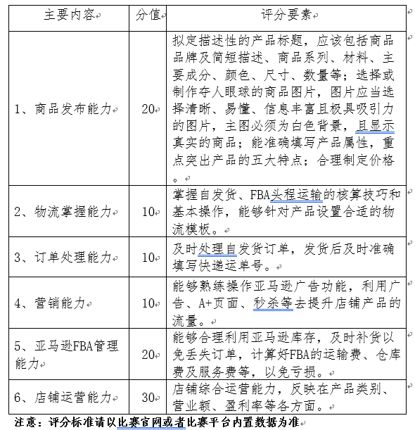 经营模拟赛为团体赛形式,由各院校参赛选手在指导老师的带领下统一报名参赛(每支参赛队伍选派1-2名指导教师,每个参赛队的选手由该校3名在校生组成)。比赛以“互联网+跨境电子商务亚马逊虚拟仿真系统”为指定竞赛平台,采取远程竞赛的方式,即参赛人员无需集中,只需在竞赛期间登录竞赛组委会指定的服务器进行操作即可。软件模拟亚马逊主要业务流程,从公司销售需求一直延伸到注册认证、选品、产品上架、亚马逊FBA、营销活动。该软件最大特色是以真实公司的产品与销售需求结合仿真的亚马逊跨境电商平台开展实训操练,学生将模拟真实岗位、操作实训平台,完成平台的销售需求,并遇见和处理真实会发生的各种状况。学生被置于相对独立的模拟世界中,作为所扮演企业中的核心员工参与到跨境电商业务的方方面面。每个学生能获得平等的处理业务机会,并得到充分训练。